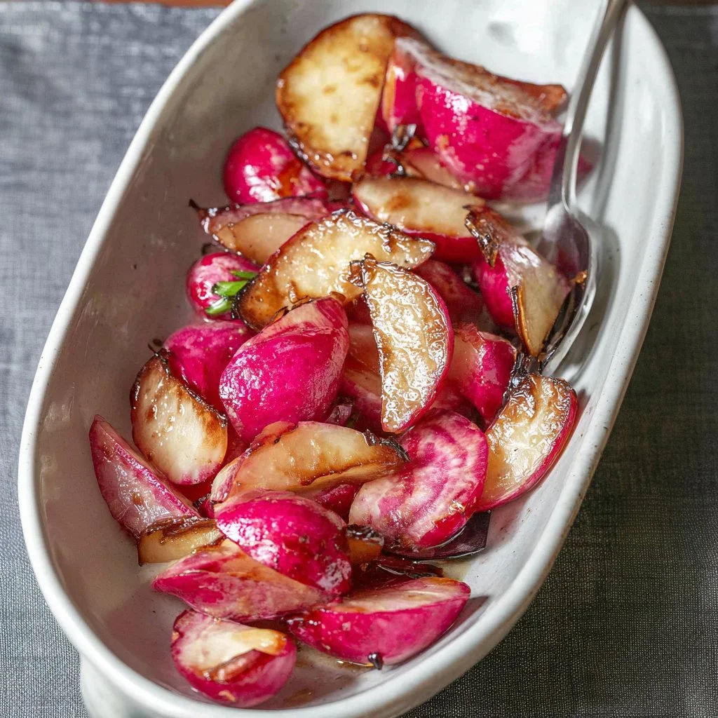 Sautéed Radishes shine when served alongside roasted meats or as a delightful addition to a vegetarian platter. Imagine them at a cozy family dinner or a potluck gathering, where they bring comfort and flavor to any occasion. Gusty evenings with warm bowls on the table create a lovely backdrop for sharing; they complement everything from a comforting stew to a light salad, perfect for quiet nights spent reminiscing with loved ones.